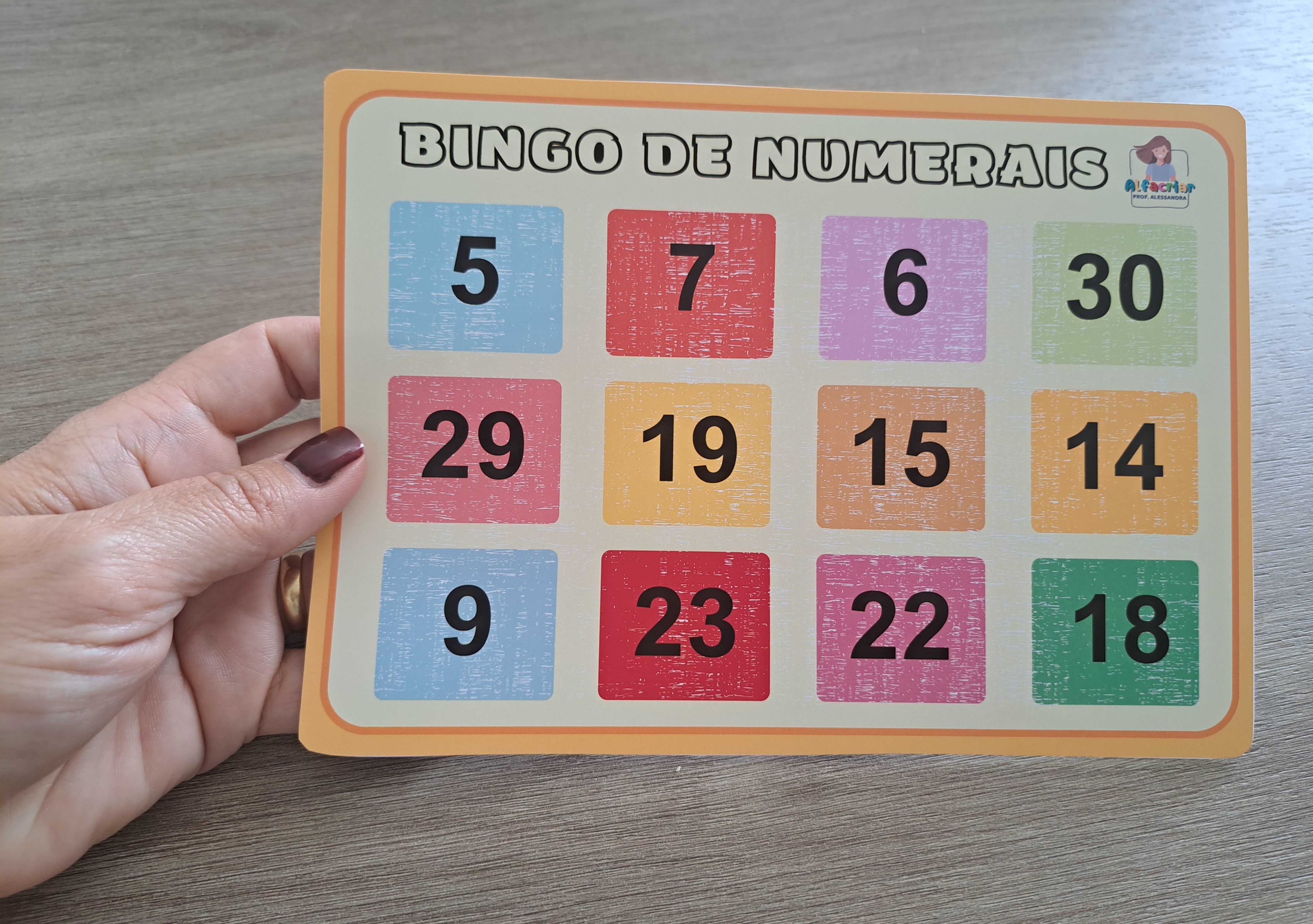 As fichas com os numerais de 0 até 30, podem ser utilizadas para realização do sorteio do bingo e posterior conferência do resultado. Após sortear o número, a ficha pode ser afixada no quadro para visualização das crianças, caso ainda estejam aprendendo a reconhecer os numerais, assim elas poderão facilmente visualizá-los.